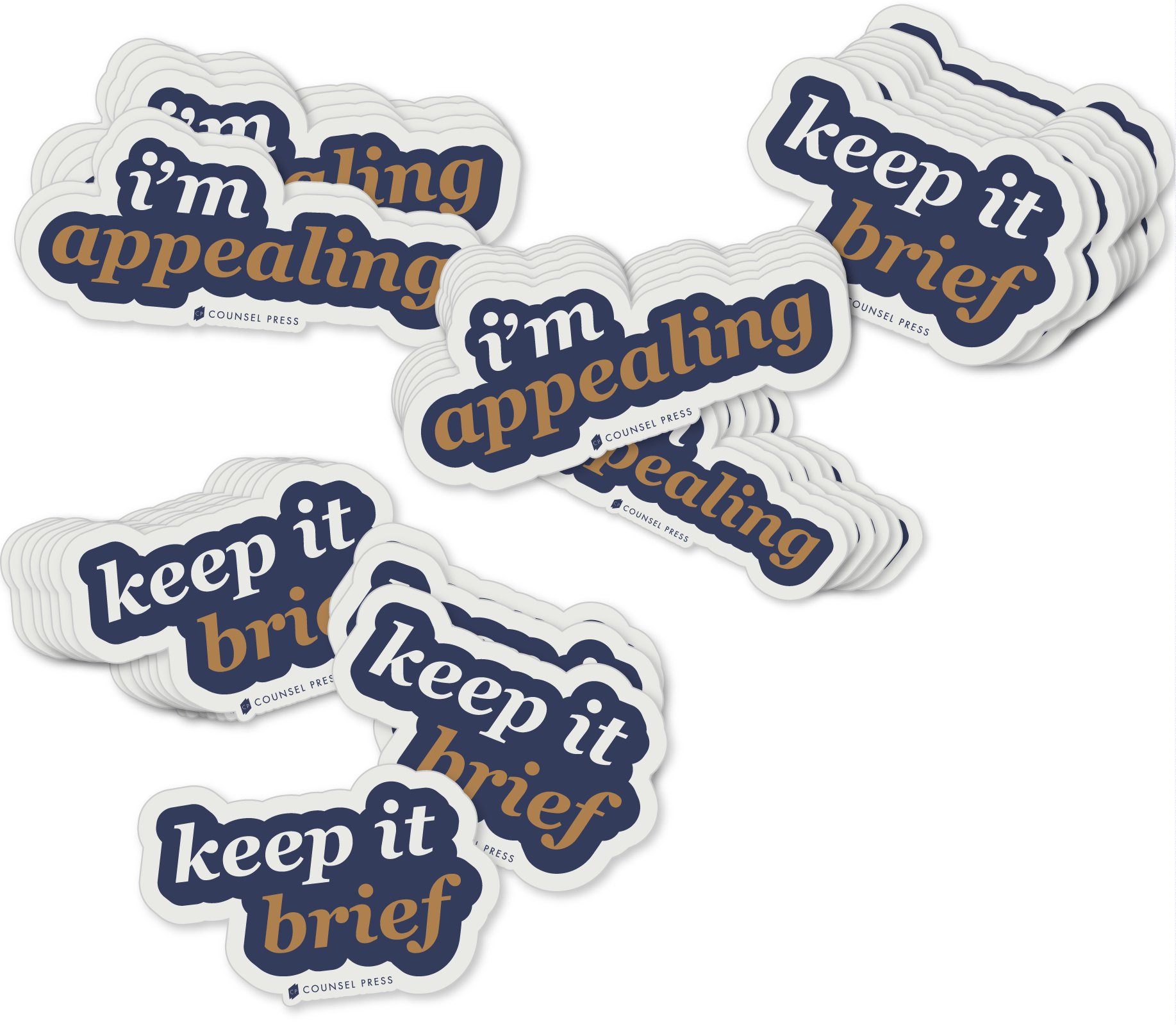 With a tongue-in-cheek take on the niche work Counsel Press and its clients performed daily, the merch items were an instant hit as marketing event giveaways. Lawyers expressed a warm affection for the clever nod at filing appeals and crafting appellate briefs, excitedly seeking out these swag items for the lighthearted and personable way to express pride in their chosen career specialty.