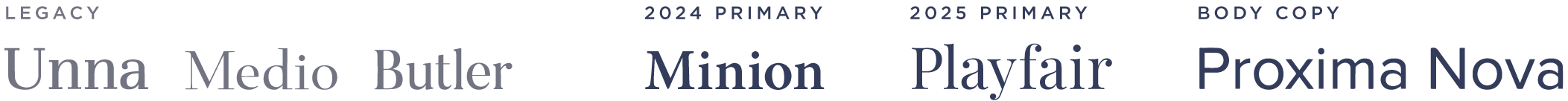 Playfair replaced Minion as primary font during the website redesign, with Metropolis serving as the site’s body copy font for best web accessibility.