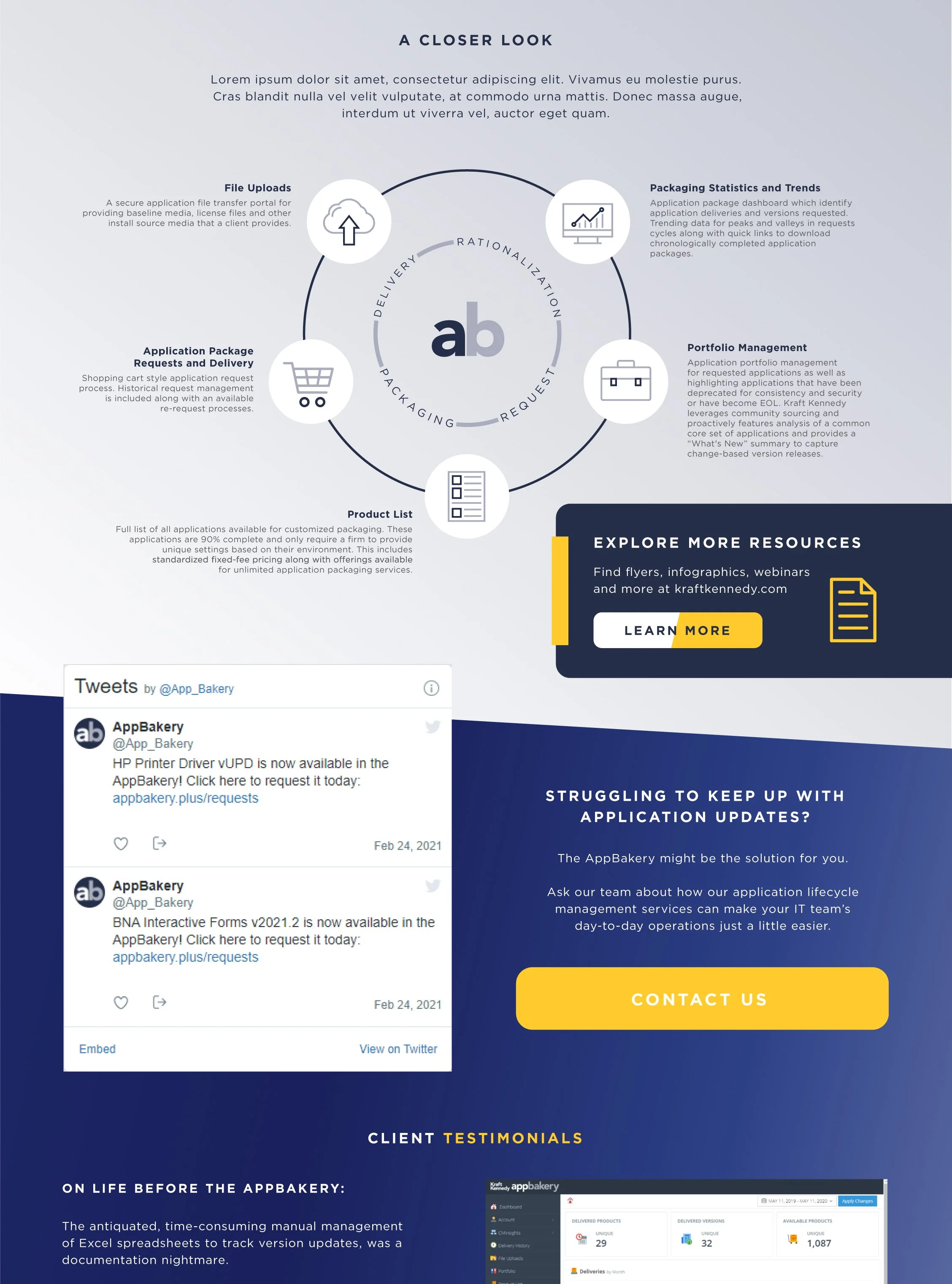 AppBakery and CMinsights are two original, industry-specific, one-of-a-kind application products developed in-house by Kraft Kennedy engineers. I worked closely with the development team to produce matching logos and color scheme to brand these solutions.