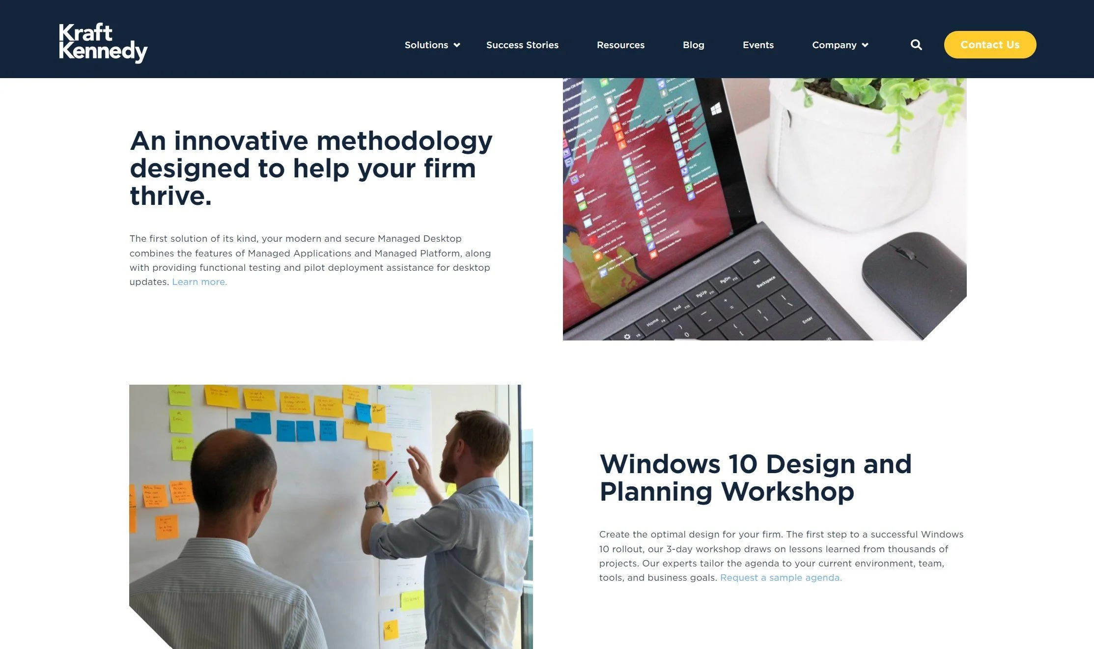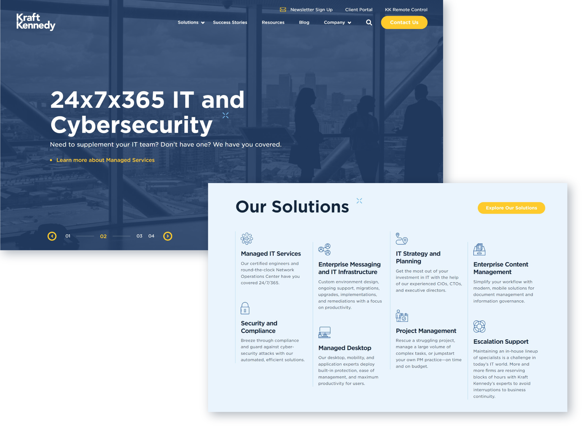 This design expands on the original brand’s color scheme and utilizes the yellow action color introduced in the main Kraft Kennedy website redesign.